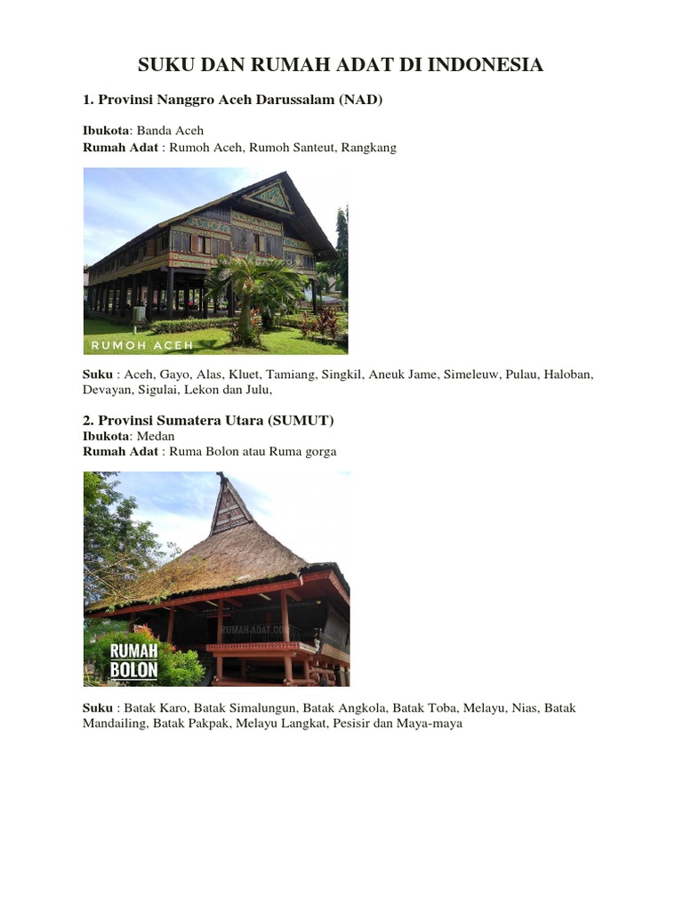 Mereka mendiami wilayah sumatera utara. Terdiri dari angkola, karo, mandailing, pakpak/dairi, simalungun dan toba. Rumah adat angkola menggunakan ijuk sebagai atap dan juga papan sebagai dinding. Rumah adat batak dari semua sub suku secara umum: Rumah adat ini bertipe rumah panggung dengan 3 bagian utama dan 1 bagian … Suku batak di sumatera utara terdiri dari beberapa jenis, yaitu batak toba, simalungun, karo, mandailing, pakpak, dan angkola. Rumah angkola menggunakan papan kayu untuk dinding dan lantainya. Rumah adat nias omo sebua, yaitu rumah adat yang biasanya ditinggali khusus buat petinggi adat sampai bangsawan. Tidak terasa, sudah mau lebaran lagi. Bangunannya dibuat dari papan kayu untuk lantai dan dinding, sementara atapnya ada yang dari ijuk dan ada yang menggunakan tanah liat. Rumah adat batak bolon simalungun. Mulai dari batak toba, pakpak, simalungun, mandailing, angkola dan karo. Rumah ini juga menggunakan konsep panggung dan terdiri dari dinding dan lantai.